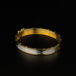 Bracelet Bulgari issu de la collection Vintage. Bracelet rigide deux ors en 18 carats 750/1000 (or jaune et or blanc), fermoir cliquet avec huit de sécurité.